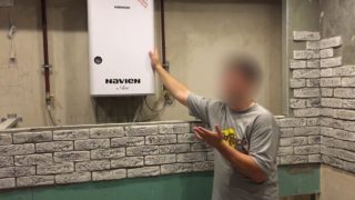 - glisser le meuble modernisé sur la chaudière, le fixer solidement sur les crochets.