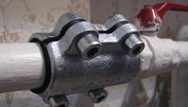 La meilleure option est d'acheter un kit de réparation à l'avance. Il se compose d'une large pince aérienne et d'un joint caoutchouté. Avec son aide, vous pouvez éliminer la fuite jusqu'à ce que le système s'arrête complètement et ensuite remplacer la partie défectueuse de la canalisation.