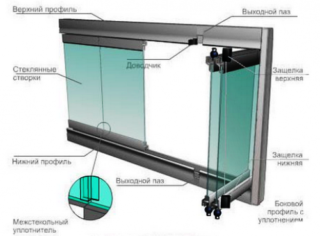 - profils - supérieur et inférieur, sur lesquels passe la charge principale; pour le mouvement et la rotation, le verre est équipé de rainures de sortie;