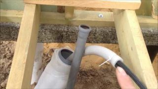 - Des trous pour un tuyau ou plusieurs tuyaux sont découpés dans le caisson, après quoi il est installé en place.