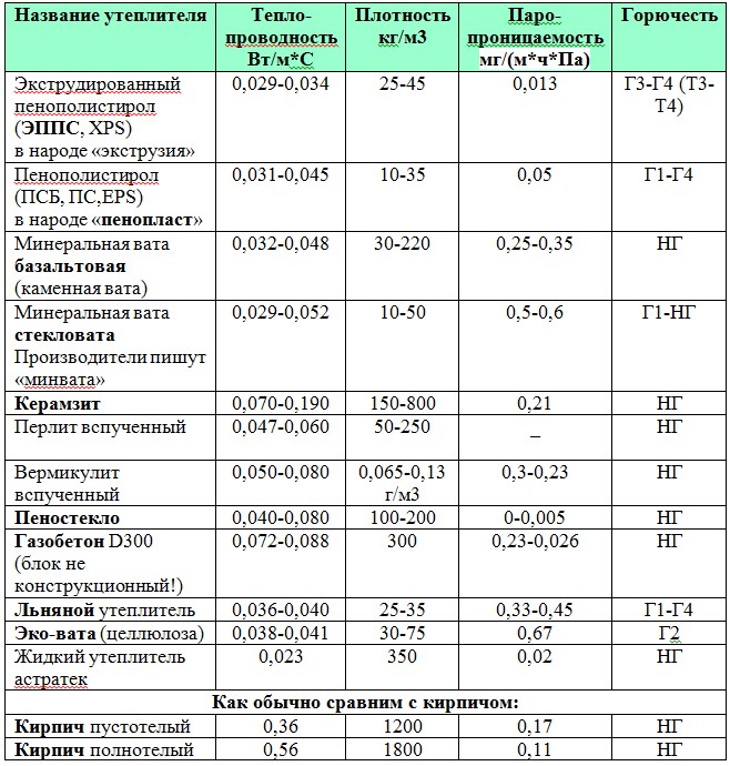 Sur la base du tableau des coefficients de conductivité thermique des matériaux de construction et des appareils de chauffage courants, une analyse comparative peut être effectuée. Il garantira la sélection de l'option d'isolation thermique optimale pour le bâtiment.