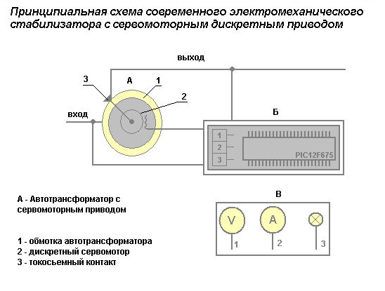 L'unité de travail principale de ce groupe de stabilisateurs est un autotransformateur avec un contact collecteur de courant mobile. L'élément de réglage est conçu comme un curseur ou une brosse amovible d'une conception spéciale. Lorsqu'il est ajusté, il se déplace le long de l'enroulement du transformateur, augmentant ou diminuant la partie de l'énergie transmise à la sortie.