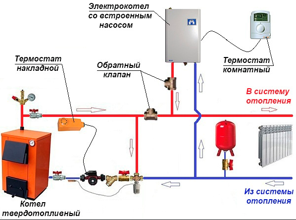 Il existe des chaudières en vente qui peuvent fonctionner avec deux types de combustibles - les réchauffeurs tubulaires électriques (RTE) sont intégrés dans les circuits d'un poêle à gaz ou à bois dans ce cas.