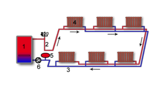 La boucle de Tichelman fonctionne avec le mouvement de passage du liquide de refroidissement. Le câblage est réalisé avec des tuyaux de même diamètre. La pression et la température du liquide de refroidissement dans chacun des radiateurs sont les mêmes, ce qui simplifie l'équilibrage. Les régulateurs peuvent régler avec précision la température dans chaque pièce individuelle.