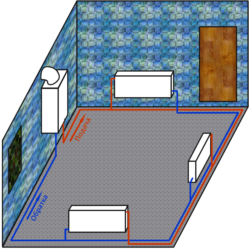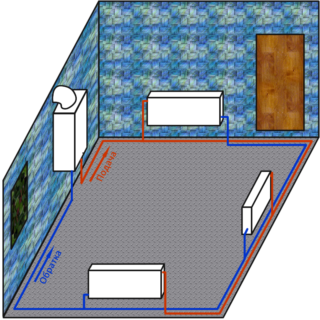 Dans les pièces avec de hauts cadres de fenêtres, l'utilisation de convecteurs au sol est courante. Par rapport à une structure à poutres, la boucle de chauffage Tichelman est mieux adaptée pour connecter ces éléments en raison d'une consommation de carburant plus faible et d'une fiabilité de fonctionnement.