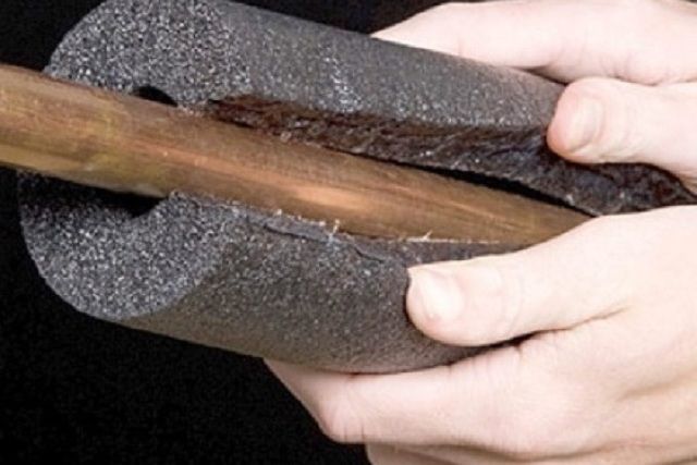 Pour le revêtement isolant des systèmes de communication, on utilise le plus souvent du polyéthylène expansé sous forme de tubes fendus, qui présentent une fente technique sur toute la longueur et peuvent être facilement placés sur des systèmes d'ingénierie déjà installés. Il s'agit d'une sorte de manteau de fourrure pour les tuyaux de chauffage ou l'approvisionnement en eau. Pour installer un tel isolateur, il n'est pas nécessaire de démonter les sections de tronc.Les moitiés sont jointes bout à bout avec des bords et collées avec du ruban métallisé.