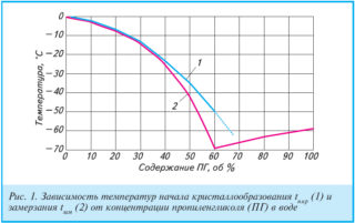- le vecteur énergétique avec le propylène glycol résiste à l'évaporation de l'eau de la solution et ne gèle pas jusqu'à -60 ° , l'éthylène glycol cristallise à -13 ° , la glycérine - + 17 ° ;