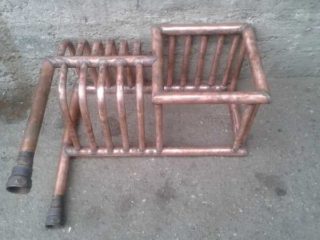 La partie la plus difficile de l'assemblage est la spirale. Pour ce faire, le tuyau devra être plié à l'aide d'une bûche installée de manière rigide. Le cuivre non recuit ne peut pas être plié, vous devez donc acheter exactement celui des baies. La façon la plus simple d'installer un échangeur de chaleur à serpentin dans un four à briques (pour le chauffage) est de le monter sur une cheminée. Algorithme des actions :