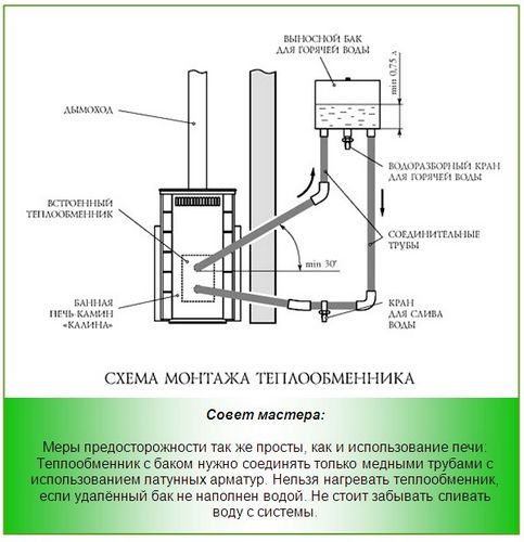 Un poêle de sauna avec un tel échangeur de chaleur fera face à tout ce que l'on peut en attendre : il assurera le fonctionnement de 2 à 3 radiateurs de chauffage, et chauffera l'eau dans un petit réservoir. Le chauffage est néanmoins responsable du microclimat dans le hammam.