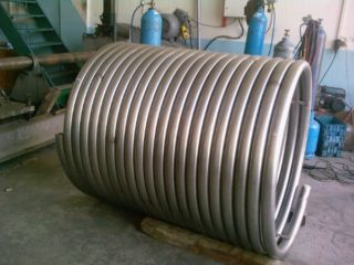 - La bobine est un tuyau coudé à différents angles. Se réchauffe rapidement, mais n'a souvent pas assez de volume. Convient pour une installation dans un foyer à bois, derrière un foyer, dans un poêle, sur une cheminée (si le serpentin est en spirale).