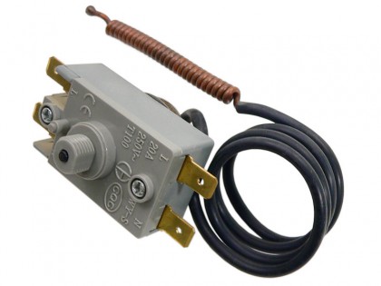 Se compose d'un tube en matériaux anticorrosion et d'une capsule à l'intérieur remplie de liquide de contraste. Au fur et à mesure que l'eau se réchauffe, elle se dilate et se presse contre la membrane. Le diaphragme ouvre les contacts. Une fois refroidi, le liquide diminue de volume et ferme les contacts.