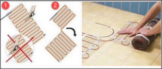 - Installation de tapis selon le schéma ou serre-câbles sur pinces en nylon. Le produit peut être coupé sans toucher les veines. Lors de la pose, les bobines sont à la même distance - environ 5 cm.