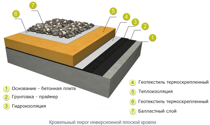 La méthode de lestage n'est utilisée que lors de l'utilisation de plaques à haute densité et rigidité. Les flans Ruf Butts sont posés directement sur le film pare-vapeur, une couche d'imperméabilisation est posée sur le dessus. Le lest maintenant la structure est placé sur le dessus. Pour les greniers inexploités, cette fonction est assurée par le remblai de pierre et dans les locaux d'habitation - dalles de pavage.
