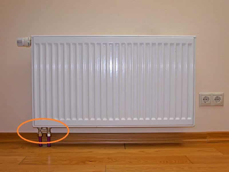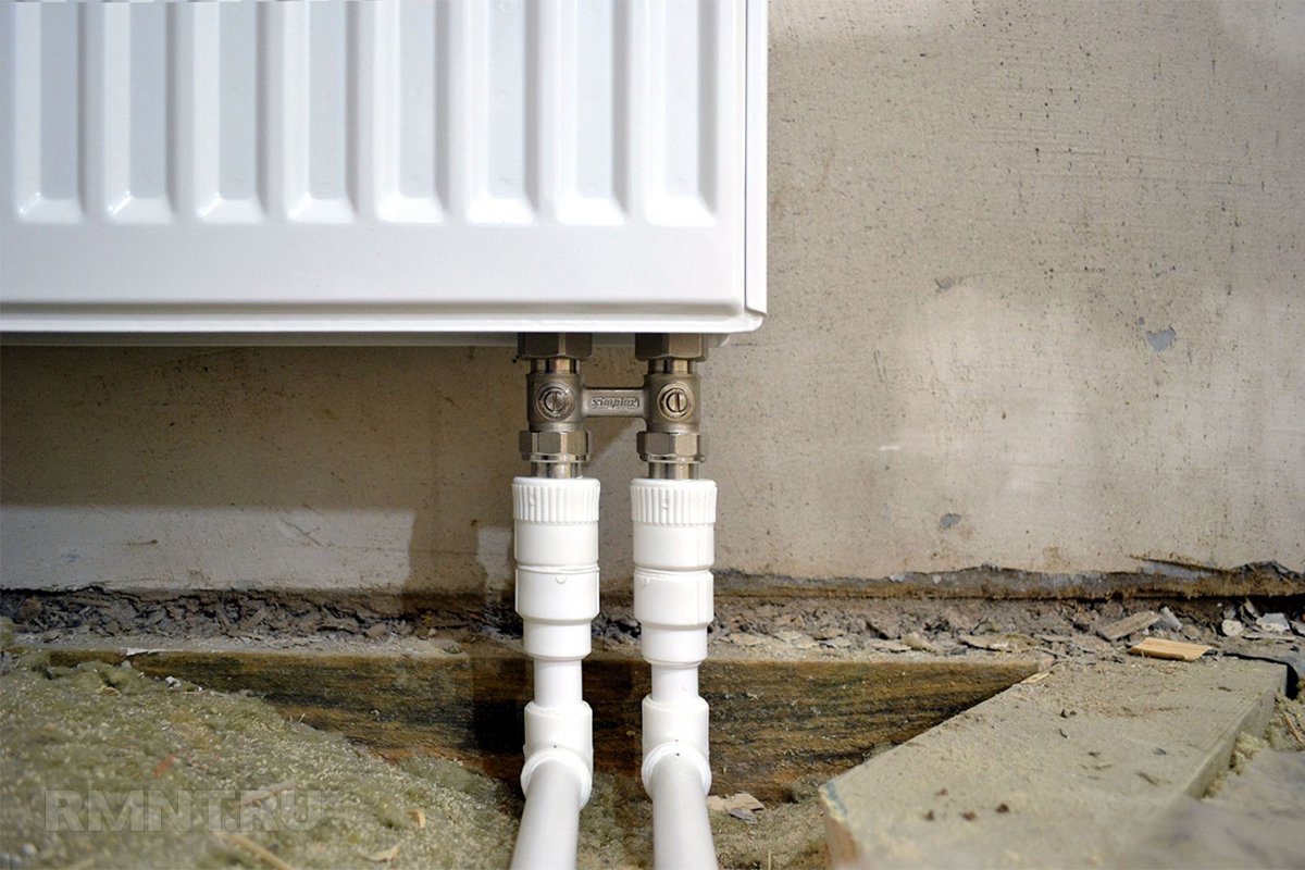 Le raccordement en selle ou par le bas est réalisé avec un système à deux tuyaux, une vanne est installée à la sortie et à l'entrée des tuyaux à obturer. La vanne se ferme, les tuyaux de dérivation sont déconnectés, les tuyaux sont déplacés sur les côtés ou vers le bas, le radiateur est retiré des supports.