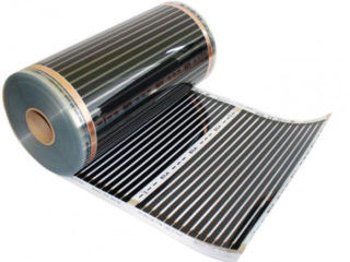 La conception du produit est sensiblement différente. La base de l'élément chauffant est toujours du carbone ou un mélange de carbone et de graphite. La composition est pulvérisée sur une base de polypropylène résistant à la chaleur, formant des pistes conductrices. La base est fermée des deux côtés avec un film à deux ou trois couches et scellée. Le matériau peut résister à un chauffage jusqu'à 120 ° C, n'a pas peur de l'eau ou de l'humidité. La largeur de la bande est de 50 à 100 cm et sont interconnectées par des bus en cuivre.