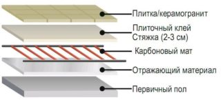 L'avantage du produit est la possibilité d'auto-ajustement. Le sol en fibre de carbone n'a pas peur de la pression, car sa conception élimine la surchauffe du fil. Si le site est temporairement recouvert de meubles, le transfert de chaleur diminue. En même temps, les tiges réduisent la consommation d'énergie et refroidissent.Dans les zones où la surface se refroidit plus rapidement, les éléments deviennent plus chauds.