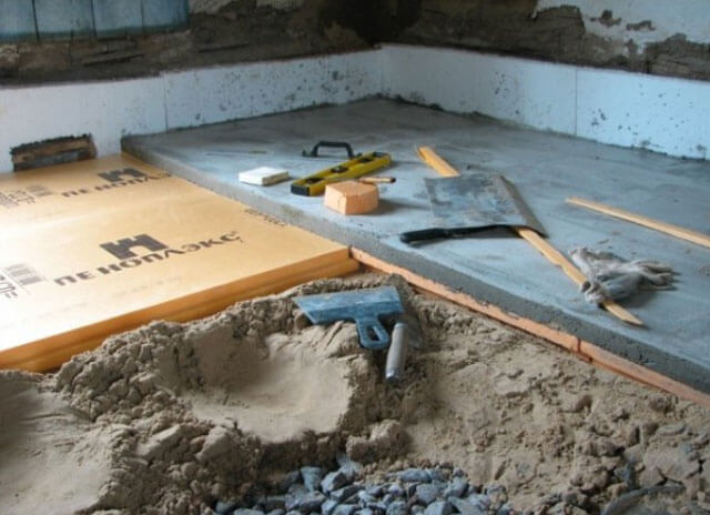 La construction de sols au sol avec isolation doit être prise de manière responsable - en cas de perturbations dans le fonctionnement du système de chauffage, vous devrez démonter la chape en béton, ce qui est une procédure coûteuse et longue.