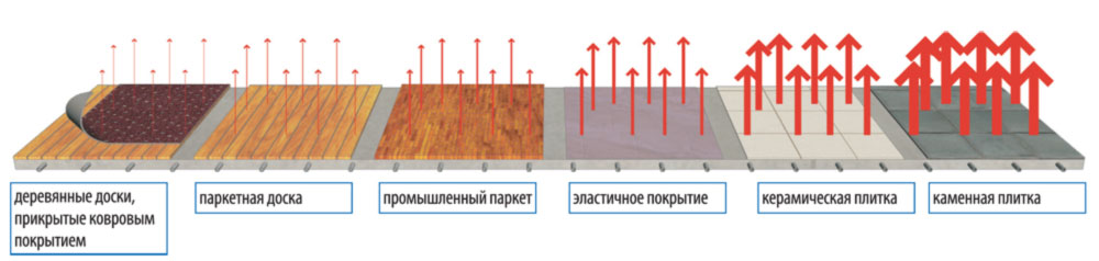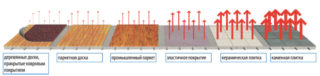 Il convient de garder à l'esprit que chacun des matériaux a une conductivité thermique individuelle. Le moyen le plus rapide après le démarrage de la chaudière réchauffera le sol carrelé, et pire encore, le stratifié laissera passer la chaleur.