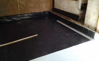 L'imperméabilisation est posée sur la chape brute. Un film de polyéthylène épais, un géotextile ou un matériau de toiture convient comme matériau.La couche est placée avec une approche des murs à une hauteur de 10-15 cm.Une fois tous les travaux terminés, l'excédent est coupé avec un couteau. Le but de l'imperméabilisation est d'empêcher la pénétration des eaux souterraines dans la pièce à travers le sol. Les matériaux modernes permettent l'imperméabilisation. par revêtement ou collage de matériaux en rouleau.