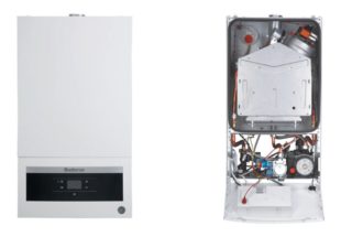 Livré avec pompe de circulation intégrée, soupape de sécurité et purgeur d'air. La chaudière ultra-compacte est capable de chauffer une grande maison de campagne.