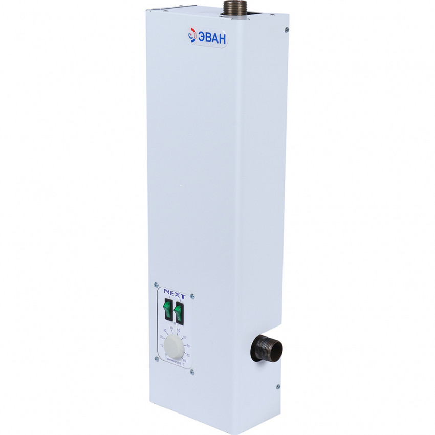 EVAN Next 7 est réalisé sous la forme d'un monobloc, qui combine le panneau de commande et la chaudière elle-même. Grâce au thermostat intégré, la température est régulée de 30 à 85 degrés. Dispose de trois étapes de contrôle de puissance.