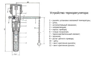 Le flacon scellé contient un liquide sensible aux changements de température et qui se dilate fortement lorsqu'il est exposé à la chaleur. À l'aide de la poignée sur le fronton du thermostat, la possibilité de mouvement du levier et du volet est limitée, le chauffage du vecteur énergétique est réglé.