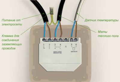 Pour connecter les éléments électriques posés dans le plancher chauffant installé sous les carreaux, vous devrez allouer une ligne électrique distincte. Il doit être protégé par un disjoncteur, pour que la fiabilité inclue un RCD individuel en série avec lui. Avant de commencer les travaux électriques, vous devez décider de la zone de raccordement pour le sol chaud. Pour ce faire, vous devrez sélectionner à un endroit pratique sur le mur un site pour l'installation d'un thermostat, auquel la ligne d'alimentation du système de chauffage est connectée.