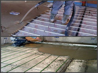 - chape humide, fabriquée à base d'une composition de ciment additionnée de divers plastifiants et de fibre de verre;