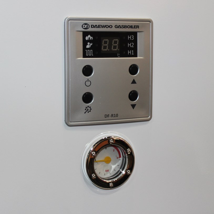 La chaudière à gaz Daewoo fonctionne en douceur, la puissance est régulée automatiquement. Combustion, le gaz chauffe un échangeur de chaleur en cuivre, qui transfère la chaleur au liquide de refroidissement. Une répartition uniforme de la température est obtenue grâce au fonctionnement de la pompe de circulation. La chaudière est complètement étanche, les produits de sa combustion sont évacués à l'extérieur par la cheminée.