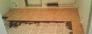 - Sous la finition. Cette technologie implique l'utilisation de tapis chauffants. Les produits sont préfixés sur la base, puis des carreaux de céramique y sont posés sans coulée supplémentaire. Une bonne et efficace solution est la disposition d'un sol en polymère autonivelant.
