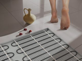 - Tapis chauffant. Appareil plus efficace à tous égards. Les éléments chauffants minces sont fixés de manière rigide à un treillis en plastique. Il n'est pas nécessaire de remplir les tapis avec une chape. Des bandes de 50 à 100 cm de large peuvent être coupées pour s'adapter exactement à la taille de la pièce. Il est pratiqué de les recouvrir de colle de 2-3 mm d'épaisseur lors de la pose de carreaux. Le tapis est facile à installer, même un débutant peut gérer ce processus.