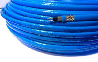 - Câble chauffant. C'est un fil en matière plastique isolante thermoconductrice. L'épaisseur du produit est de 6-12 mm, le rayon de courbure maximum est de 5-10 cm, selon le diamètre. Après fixation et vérification des performances, la structure est remplie de mortier de ciment. Différents modèles ont une puissance de l'ordre de 10 à 30 W / r.m. La qualité du chauffage est déterminée par la distance entre les tours du serpent.