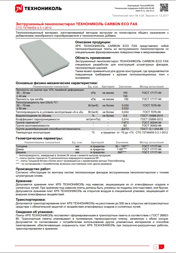 - Le respect de l'environnement est conforme aux normes de l'UE. La teneur maximale en matière organique (y compris le phénol) dans les dalles TechnoNIKOL ne dépasse pas 4,5%.