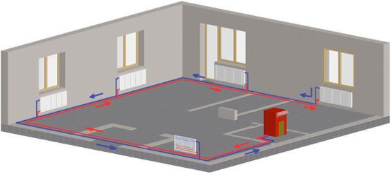 Dans l'écrasante majorité, un système de chauffage horizontal à deux tuyaux avec un câblage inférieur est installé dans des maisons privées à un ou deux étages. Mais, en plus de cela, il peut être utilisé pour se connecter au chauffage centralisé. Une caractéristique d'un tel système est la disposition horizontale des conduites principales et de retour (pour les deux tuyaux).