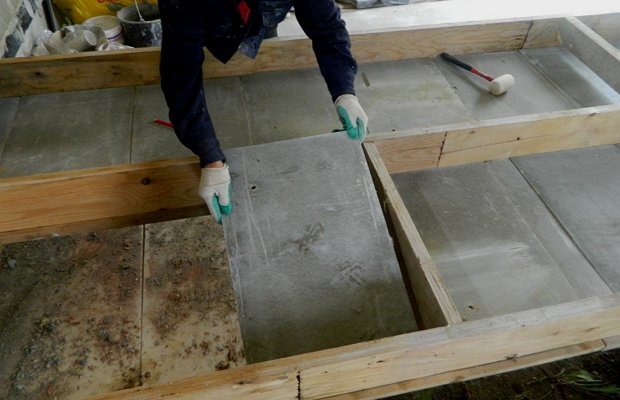 - installation de l'isolation du sol du côté de la pièce du sous-sol;