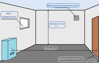 - lors du placement de l'équipement dans une pièce séparée, son volume total ne peut être inférieur à 7,5 m³ et sa superficie - 6 m² avec une hauteur sous plafond de 2,5 mètres;