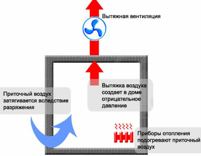 - un tuyau d'échappement est sorti de la pièce vers le toit, dont la sortie est située plus haut que le point d'entrée - à son extrémité, la pression sera plus basse.