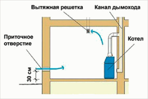 Avant d'installer un équipement de chauffage dans une maison privée, il sera tout d'abord nécessaire de lui allouer une pièce séparée et d'organiser une hotte d'extraction efficace dans la chaufferie. Une ventilation de haute qualité pour une chaudière à gaz garantit que les résidus de combustion sont éliminés de la pièce et que des conditions climatiques normales y sont maintenues. Lors de son organisation, les exigences des documents réglementaires (SNiP) sont également prises en compte, selon lesquelles des organisations spéciales doivent s'occuper du développement du projet et de sa mise en œuvre. Si l'utilisateur décide de le faire de ses propres mains, il devra coordonner le problème avec les services de gaz locaux.