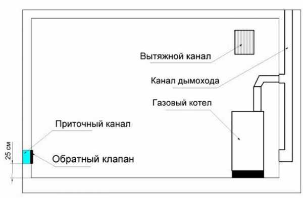 - Par la méthode d'alimentation en air - avec circulation forcée ou naturelle. Dans le premier cas, un ventilateur est installé, dans le second, les masses d'air entrent par les fenêtres et les portes.