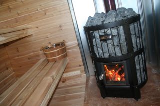 - Vira 12. L'appareil classique pour un sauna d'un volume de 12 mètres cubes. L'ouvrant, selon la configuration, est en métal ou en verre panoramique. Le poids des pierres à poser est de 41 à 50 kg, la longueur des bûches est de 40 à 50 cm.