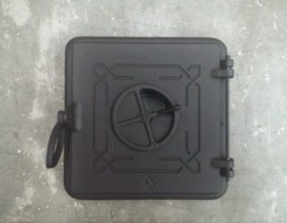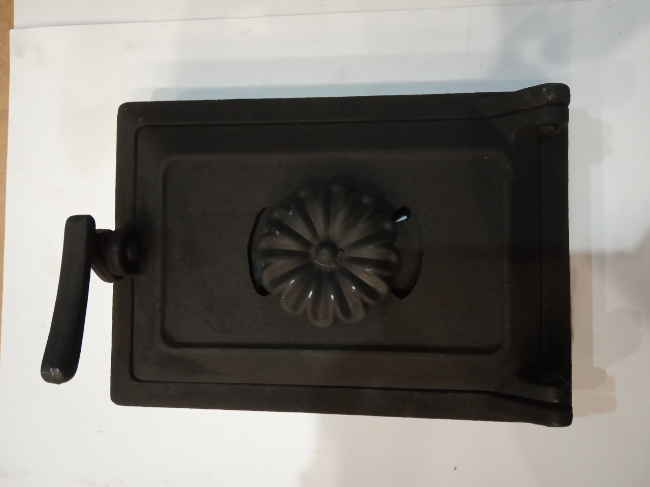Il s'agit d'un modèle classique commun avec une poignée pivotante empêchant la porte de s'ouvrir. Installé dans de simples poêles en briques dans de vieilles maisons de campagne. Ce n'est pas hermétique. Une telle conception peut avoir un mécanisme qui la presse fermement contre le foyer.