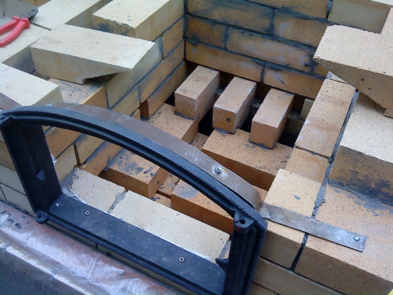 Des plaques à brides en acier inoxydable peuvent être utilisées. Ils sont fixés à la maçonnerie avec des vis autotaraudeuses. Vous pouvez utiliser une coque qui est fixée autour du périmètre du trou du four. Le cadre de la porte du four peut être fixé à la structure lors de la pose du foyer, ou cela peut être fait ultérieurement.