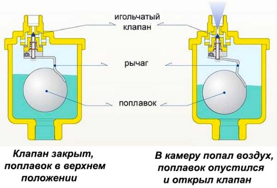 Le purgeur automatique du système de chauffage a un principe de fonctionnement très simple :