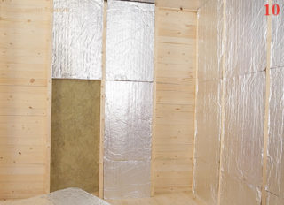 - Un espace d'air doit être laissé entre la couche de décoration intérieure et les dalles Sauna Butts ; pour cela, une caisse est montée sur l'isolant.