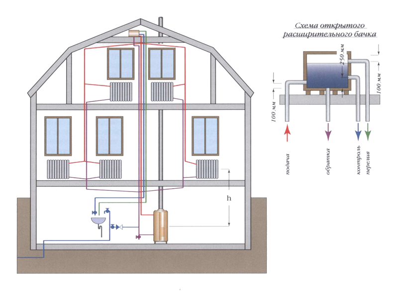 Un vase d'expansion doit être prévu pour le remplissage supérieur de l'installation de chauffage. Il est situé au point le plus élevé et remplit plusieurs fonctions. Le principal est la stabilisation de la pression lors du chauffage de l'eau dans les tuyaux. Si un réservoir de type ouvert est installé, le liquide de refroidissement peut être rempli par celui-ci.
