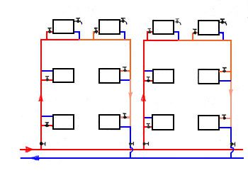 Ce système nécessite l'installation de deux lignes de la ligne. Le liquide de refroidissement chaud pénètre dans l'un d'eux et le second sert de canalisation de retour.