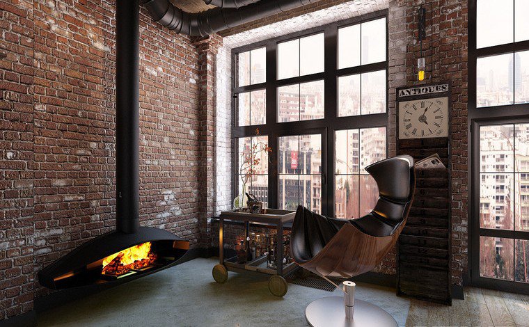 Pour une décoration intérieure de style loft, les cheminées à portails en pierre sont parfaites. La texture de surface peut être lisse ou poreuse. La préférence devrait être donnée à un lisse, car il est plus facile à entretenir.