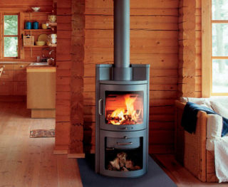 Il est recommandé d'installer un modèle à foyer fermé avec un échangeur de chaleur en fonte. La pièce est protégée contre une étincelle tombée accidentellement. La conception panoramique donne au radiateur un aspect attrayant.