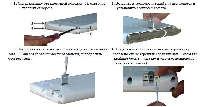 Les appareils de chauffage montés au plafond sont non seulement compacts, mais aussi efficaces. Ils sont produits par des sociétés nationales (Peony, Almak) et étrangères (Ballu, Polaris, Timberk, NeoClima).
