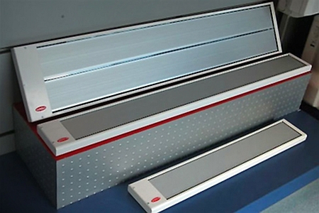 - Ouvert avec réflecteur. Ces radiateurs UV montés au plafond sont les plus courants. L'équipement se compose d'un boîtier, d'une grille de protection, d'un régulateur de puissance, d'un générateur de rayons IR et d'un réflecteur. Pour la fabrication de ce dernier, on prend de l'aluminium poli, qui dirige le rayonnement infrarouge. Un tel dispositif, si désiré, est complété par un thermostat.